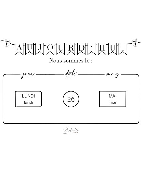 Tableau mural magnetique en bois (norme FSC) gravée au laser pour l'apprentissage de la date du jour comprenant 50 magnets (jours, date, mois)